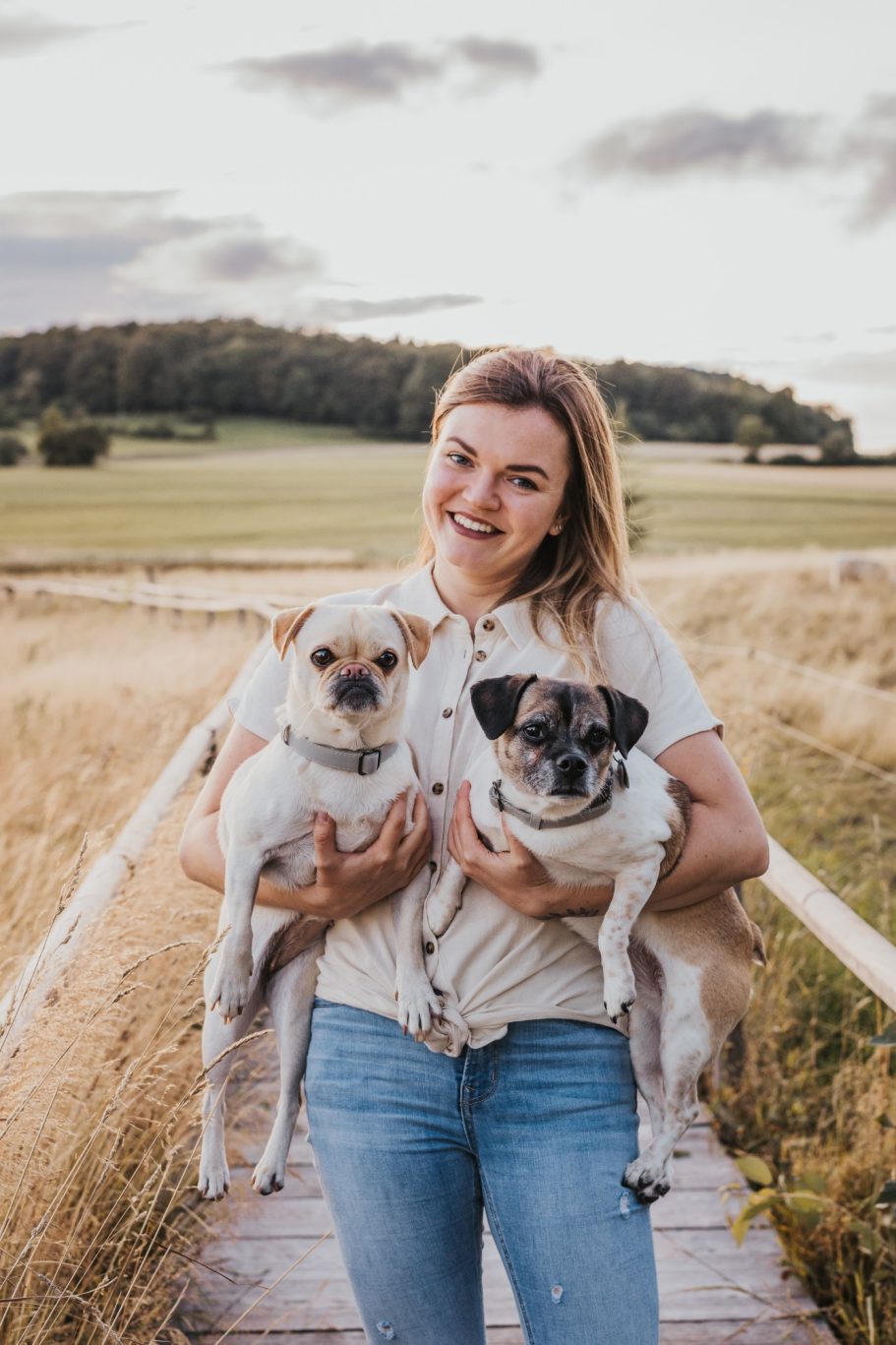 2016 kam meine Mischlingshündin Molly in mein Leben. 2020 haben mein Mann und ich dann unsere Mopsdame Lola adoptiert. Da Molly leider schon seit jungen Jahren an einer Hüftgelenksarthrose leidet und ich damals auch die Hilfe einer lieben Physiotherapeutin in Anspruch nahm, kam ich auf die Idee, das Ganze selbst in die Hand nehmen zu wollen. Also startete ich im Mai 2021 meine 2-jährige Ausbildung zur Hundephysiotherapeutin.